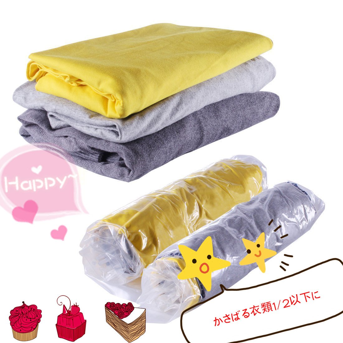 ● Compress bulky clothing to about 1/3.