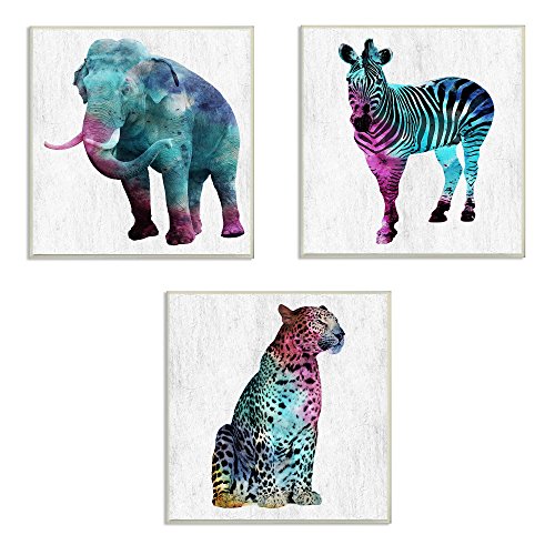 Stupell Home Décor Watercolors Elephant, Zebra and Tiger 3pc Wall Plaque Art Set, 12 x 0.5 x 12, Proudly Made in USA