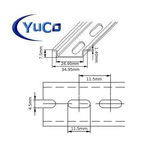 -. Title : YC-DR-16 YuCo FACTORY CUT 16" INCHES (16"=406.40mm) STEEL DIN RAIL 35 X 7.5mm SLOTED PR0055 ASI