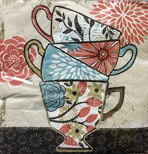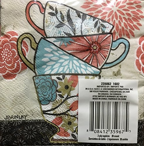 Set of 30 Cocktail Beverage 2-ply Paper Napkins ~ Floral Tea Cups