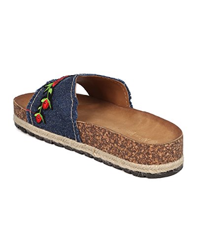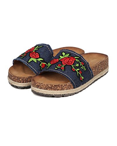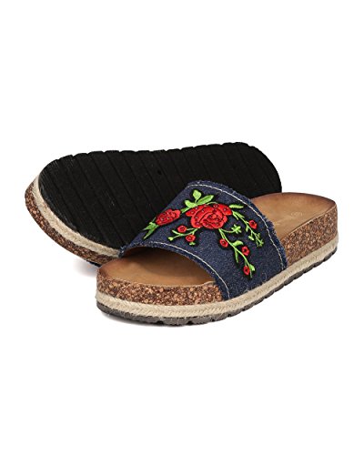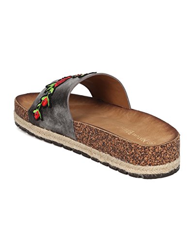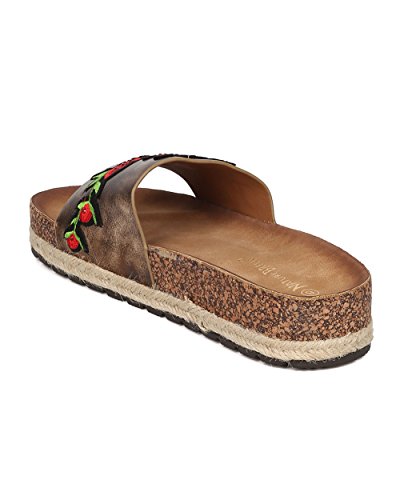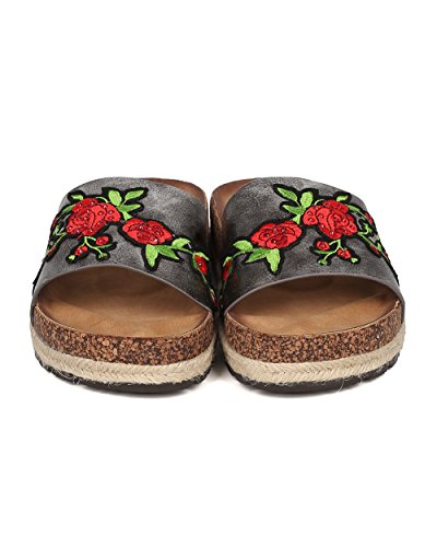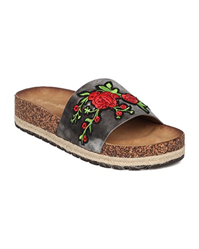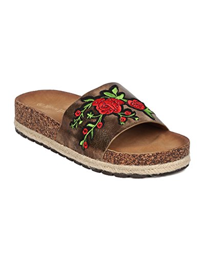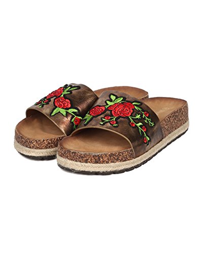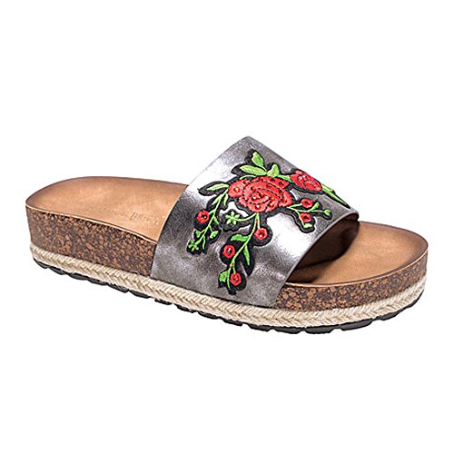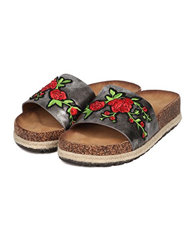Women Metallic Embroidered Sandal - Espadrille Slide - Roses Footbed Sandal - GH94 by Nature Breeze