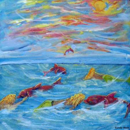 3dRose apr_66355_4 Playful Pink Porpoises, Mermaids Swim with The Dolphins-Full Length Black Apron with Pockets, 22 by 30-Inch