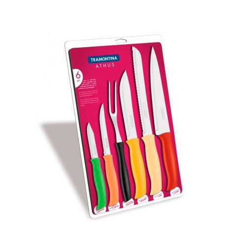 TRAMONTINA 컬러풀 부엌칼 나이프 커트러리 6점 세트(플라스틱 팩) 《아토스》