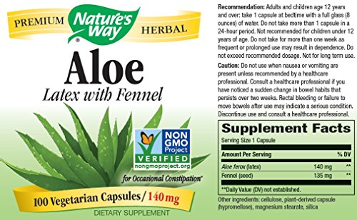Natures Way Aloe Latex with Fennel 140 milligrams 100 Vegetarian Capsules. Pack of 3 bottles.