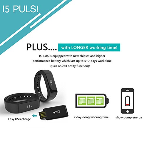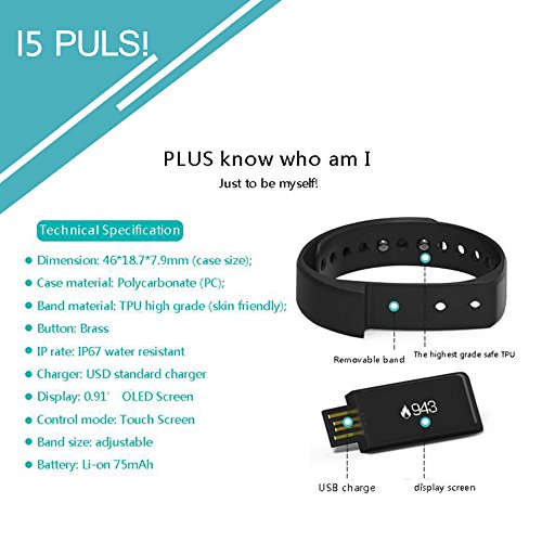 -. Title : iwown Smart Bracelet i5 Plus IP67 Waterproof Wristband Bluetooth 4.0 Activity Push Message Remote Control Passometer Fitness Tracker