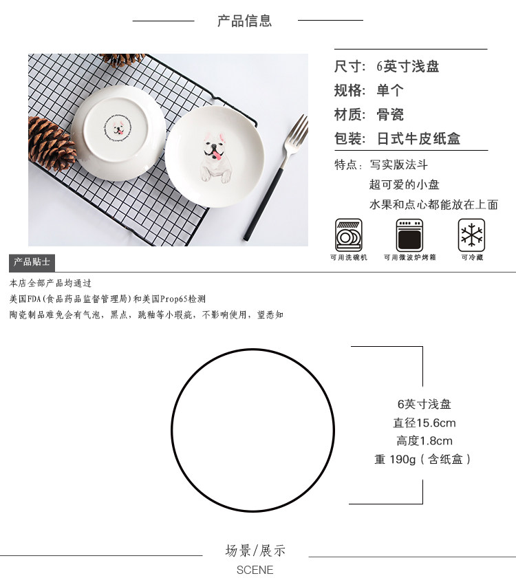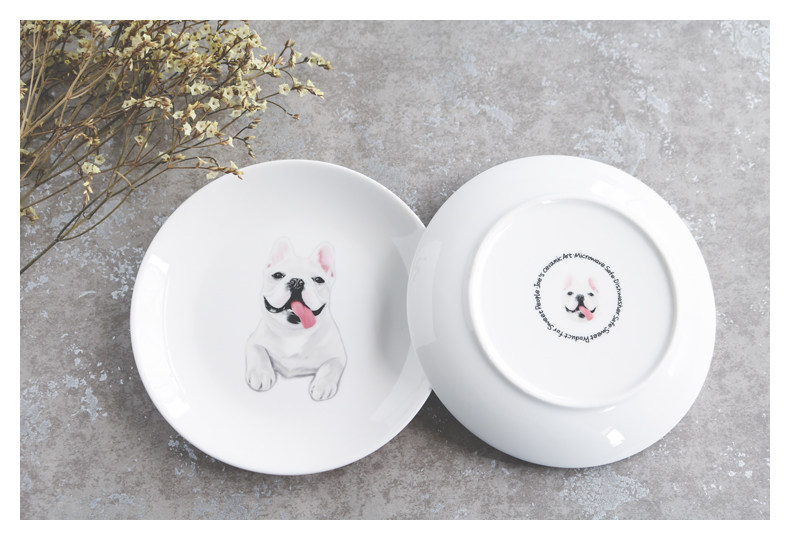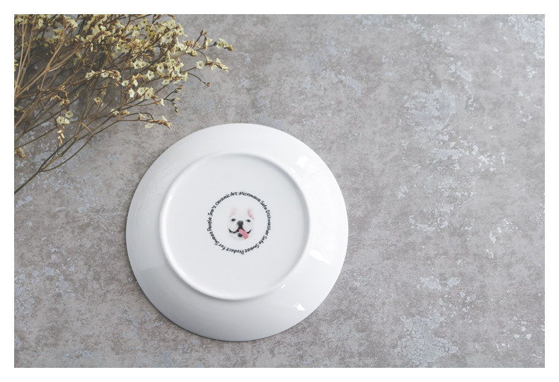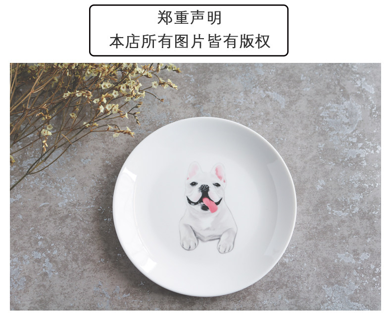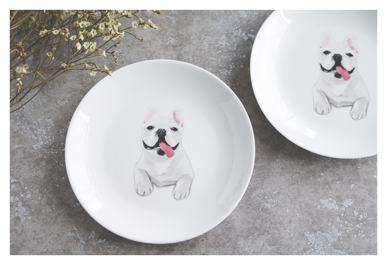 法国斗牛犬系列圆形家用厨房小盘子水果点心蛋糕盘微波炉烤箱适用
