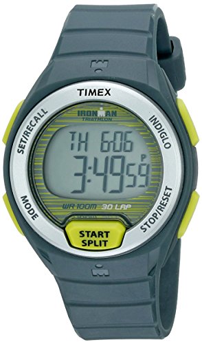 Ironman 30-LapThe iconic Ironman 30-Lap provides indispensable functions for athletes at any level. The classic styling is rooted deep in Ironman tradition, but updated with new functionality, design features and materials.Features: 30-Lap Memory Recall 100-Hour Chronograph with Lap and Split Times On-the-Fly Lap or Split Recall 99-Lap Counter 24-hour countdown timer with: countdown/stop (CS) and countdown/repeat (CR) Daily, Weekday or Weekend Alarm with Five-Minute Backup 2 time zone settings On-Screen Prompts Make Setting Easy Forward or Backward Setting INDIGLO night-light NIGHT-MODE feature Durable and Lightweight Resin Case Water-Resistant to 100 Meters Bold case and top ring Logging Capability NONE Motion Detection (GPS/Accelerometer) NONE Screen Size NONE Speed NONEFeature