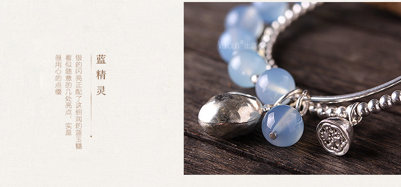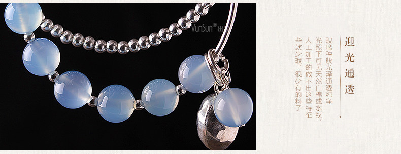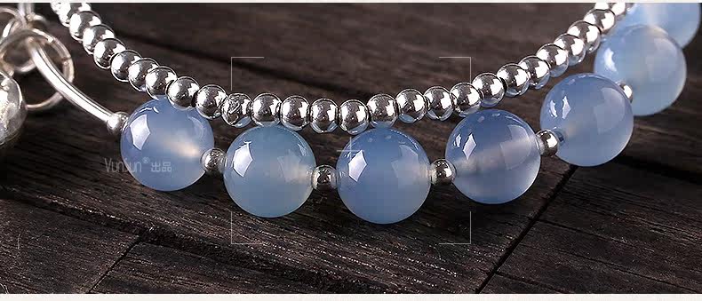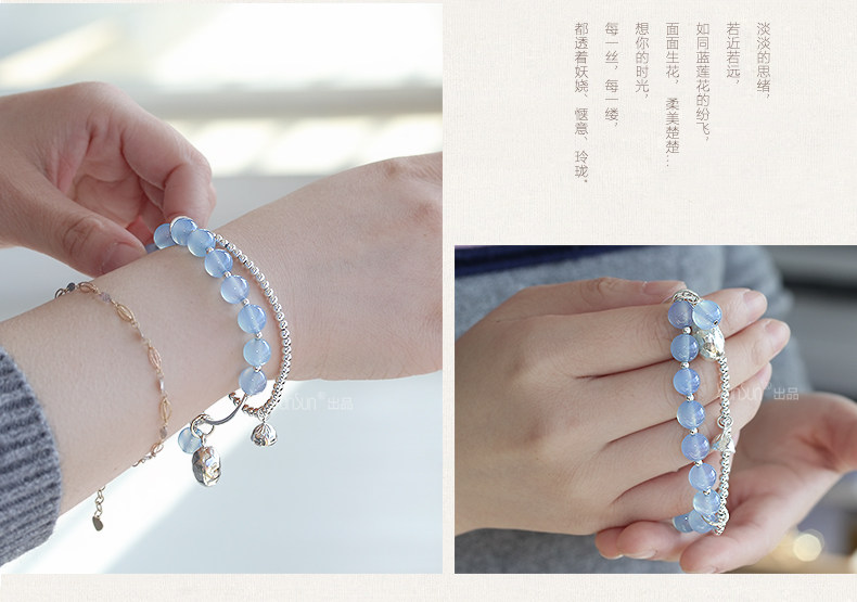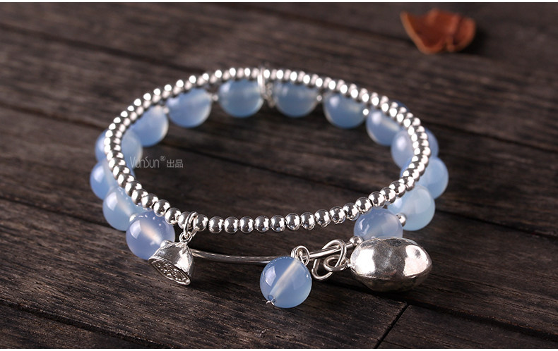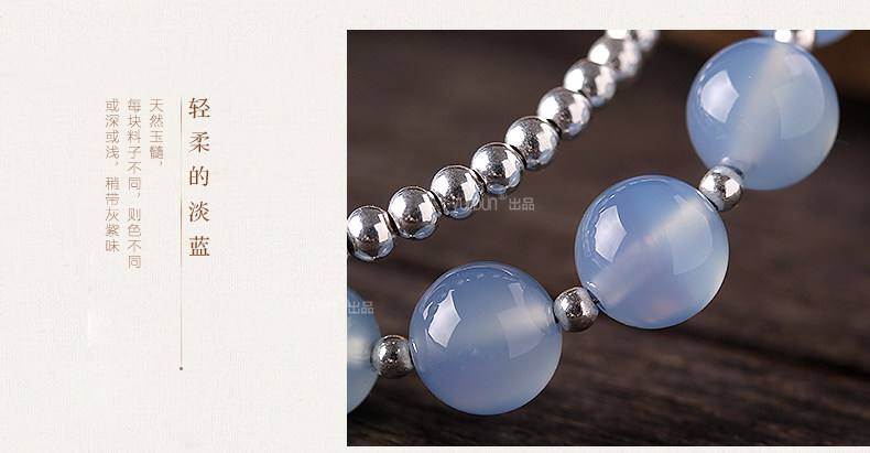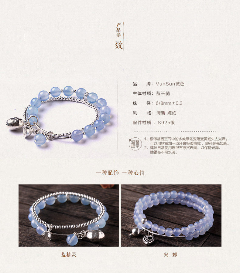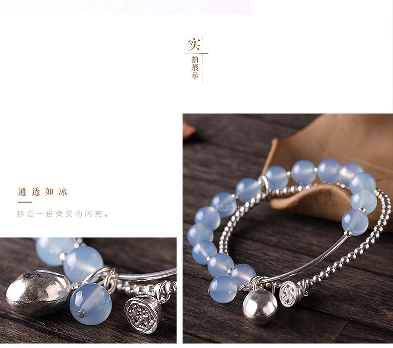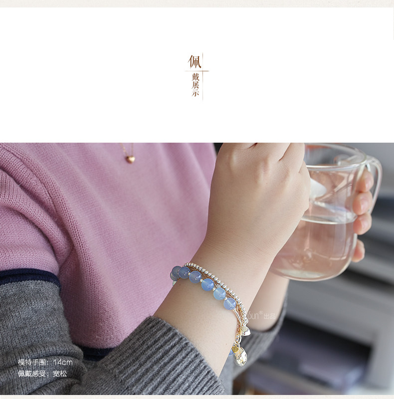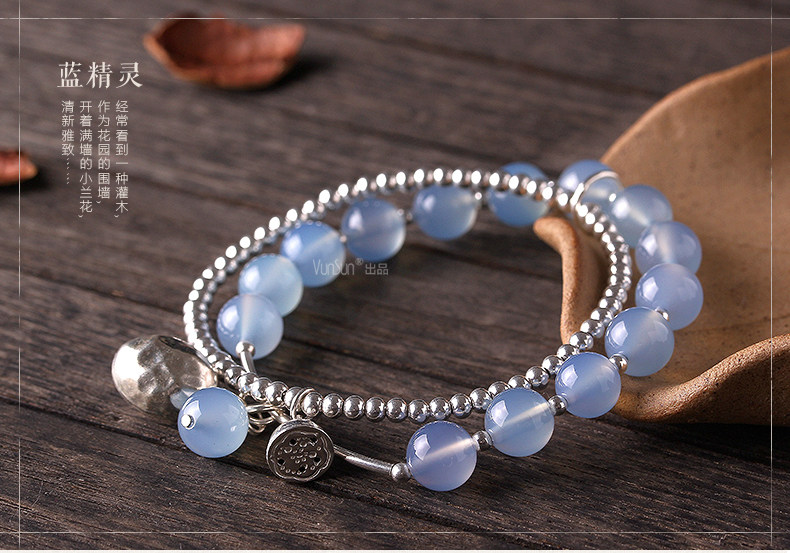 天然水晶 蓝玉髓手链女款 多层缠绕s925银饰玛瑙手串礼物