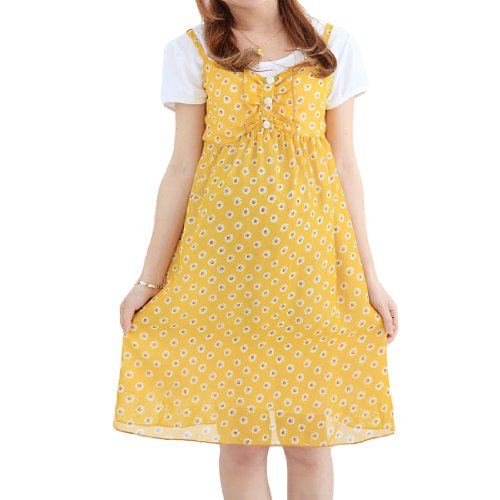 Feature : EU Size : 30;UK Size : 2;US Size : 0;Hip Girth : 34.5 inches;International Size : XS / Occasion : Casual;Total Length : 95cm/37.4inches;Waist Girth : 24 inches;Dress Length : Knee-Length;Bust Girth : 32 inches / Neck Style : Scoop Neck;Shoulder Width : 39cm/15.3inches;Sleeve Length : 13cm/5.1inches;Maternity Clothing Type : Dresses / Suitable for : Maternity;Pattern : Floral Prints;Brand : SourcingMap;Size Type : Regular / Color : Yellow;Material : Cotton Blends,Polyester,Chiffon;Net Weight : 232g;Package Content : 1 x Maternity Dress