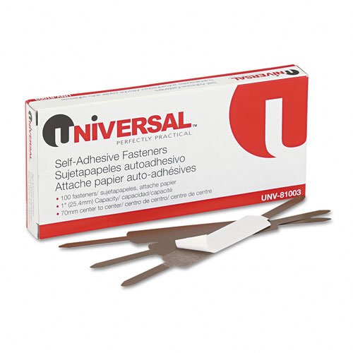 Universal Self-Adhesive Paper and File Fasteners, One Inch Capacity, 100/Box