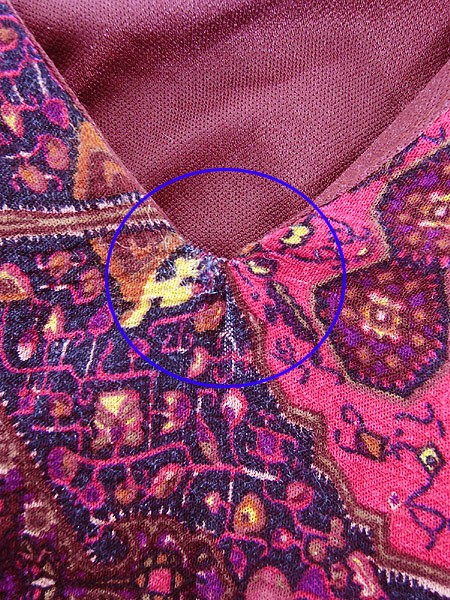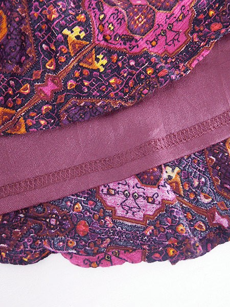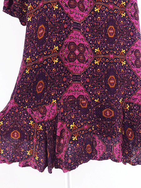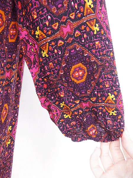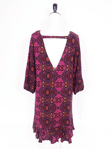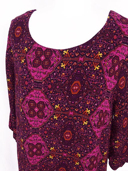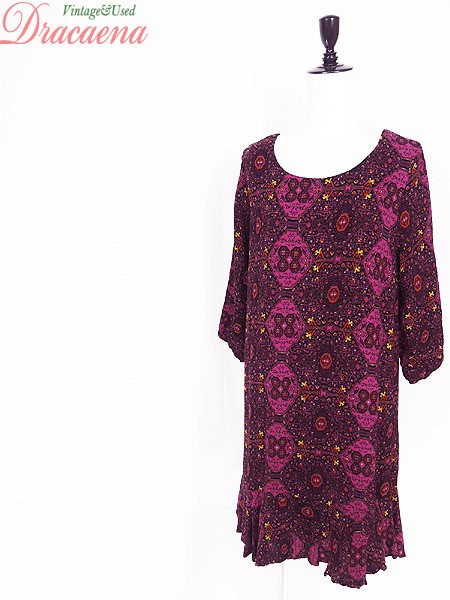 Ladies ブランド- カラーマゼンタピンクベース メール便不可 コンディション★★★ 素材レーヨン・裏地ポリエステル 表記サイズXL 実寸サイズ 着丈 88 cm 身幅 47 cm 肩幅 38 cm 袖丈 36 cm ※ウエスト・ヒップ以外は平置き採寸
