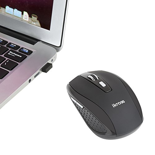 iKross 2.4G Portable Compact Wireless Optical Mouse Mice for Laptop Computer PCs, 2 DPI Levels (800/1600) - Black