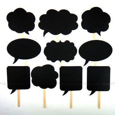 - 10 Pieces Party Props without the speech signs as shown, you can write any word with chalk.