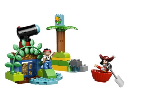 Features rigging, lookout tower, pirate-themed DUPLO bricks and cannon with shooter function Island features palm tree, treasure chest, shovel