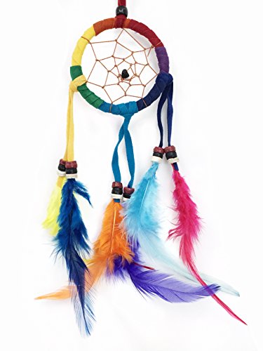 PEPPERLONELY Dream Catcher Multi-Color Feathers 2.5 Inch Diameter, 12 Inch Long