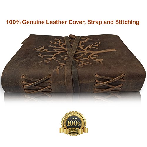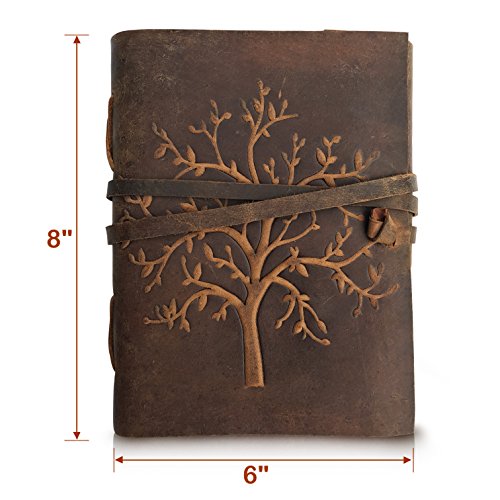 LEATHER JOURNAL TREE OF LIFE Writing Notebook - Handmade Leather Bound Daily Notepads For Men & Women Blank Paper Large 8 x 6 Inches - Best Gift for Art Sketchbook, Travel Diary & Journals to Write in