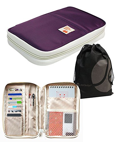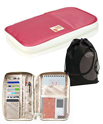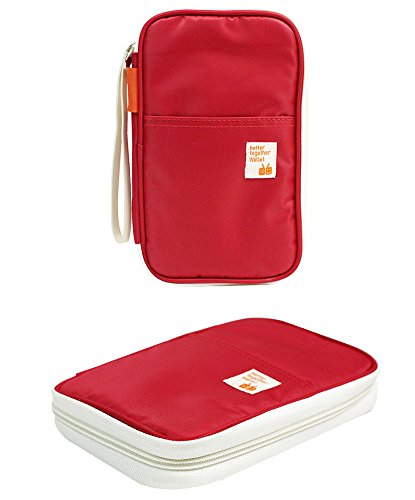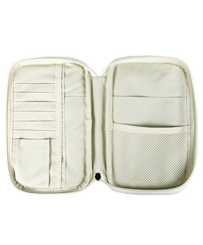 - Feature : Zippered passport and travel document organizer keeps all documents and passports organized together / Keep yourself organized and stress-free while traveling with this large zippered passport and travel document organizer wallet with wristlet / Premium nylon material, zipper closure, wristlet, exterior front pocket, zippered back pocket, interior mesh pocket, numerous pockets and slots in the interior for travel documents / Various sized pockets and slots (12) for passports, credit cards, I.D., plane tickets, money, receipts, memos, and other travel documents / Money back satisfaction guarantee