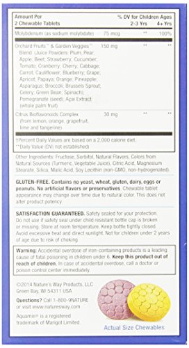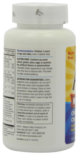 -. Binding : Health and Beauty -. Brand : Nature's Way -. Label : NATURE'S WAY -. Manufacturer : NATURE'S WAY -. PackageQuantity : 1 -. ProductGroup : Health and Beauty -. ProductTypeName : HEALTH_PERSONAL_CARE -. Publisher : NATURE'S WAY -. Studio : NATURE'S WAY -. Title : Nature's Way Alive Children's Multi-Vitamin Chewable Tablets