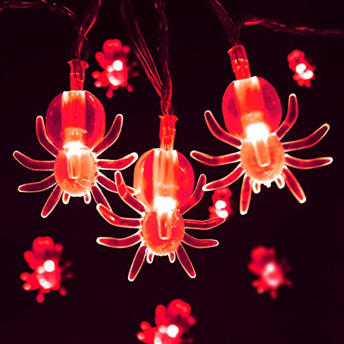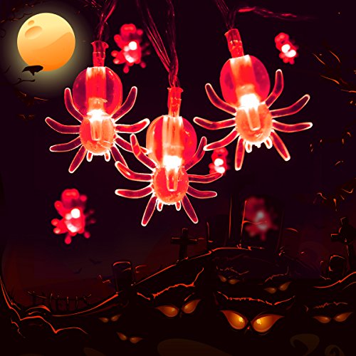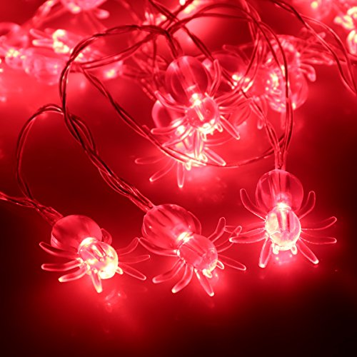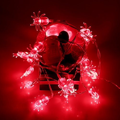 Red Spider Halloween String Lights,7.5ft 20 LED Battery Operated Holiday Decorations Lights for Indoor Christmas Party Garland Decor (1 Pack)