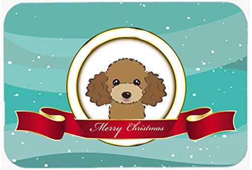 Caroline's Treasures BB1566LCB Chocolate Brown Poodle Merry Christmas Glass Cutting Board, Large, Multicolor