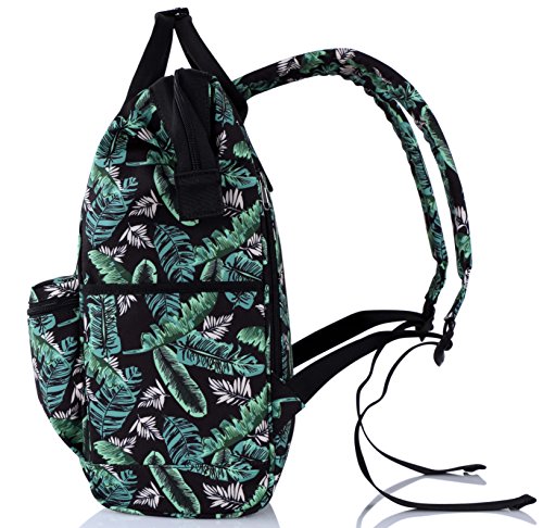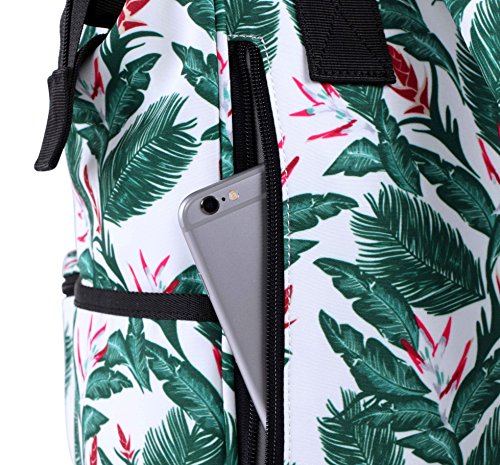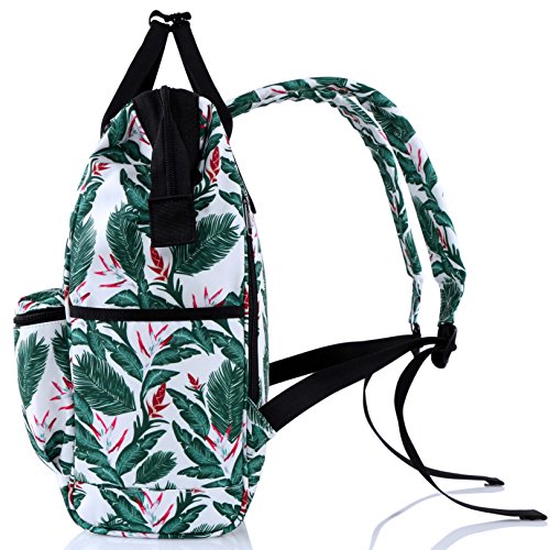 -. Feature : Cute backpack for girls/woman. Fashionable tropical leaves pattern design, best personalized carry-on addition for any purpose - school, work, travel, weekender, nursing, and so on / Convertible Bag. Cool two-way carry model - become a stylish handbag or carry as a trendy backpack purse / Roomy daypack. Holds 20 liters / 21 pounds, with multi pockets inside to keep your books and other stuff organized, padded sleeve compatible with all 13 inches laptop / Water-resistant packs. Water-repellent finished, keep your gadgets dry inside the bag in LIGHT rains / Guaranteed Quality. Made from sturdy, eco-friendly polyester, YKK twin zip closure, every seam is reinforced. 12-months warranty for quality