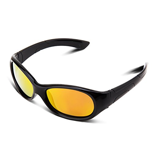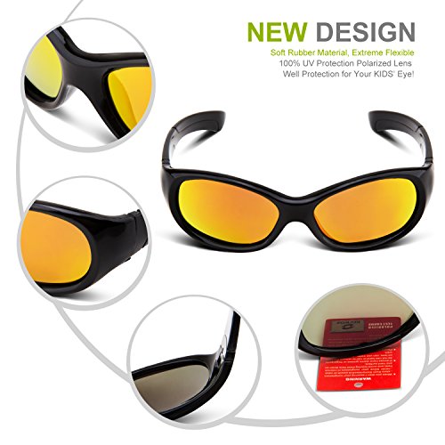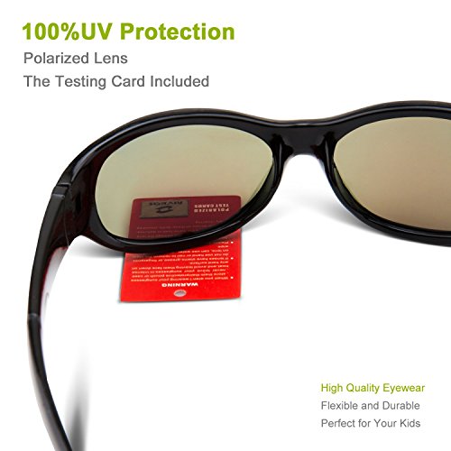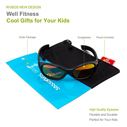Binding : Eyewear Product Description RIVBOS Children's Polarized Sunglasses Keep your child's eyes protected from the sun year round with RIVBOS sunglasses. Available in bright, bold colors, our sunglasses block 100% of the sun's harmful UVA UVB rays and meet AOA (American Optometric Association) specifications for non-prescription sunglasses. Made of flexible Dupont rubber, they also feature polycarbonate impact scratch resistant lenses. Polycarbonate impact and scratch resistant. Completely flexible and virtually unbreakable arms made of 100% Dupont rubber. 0