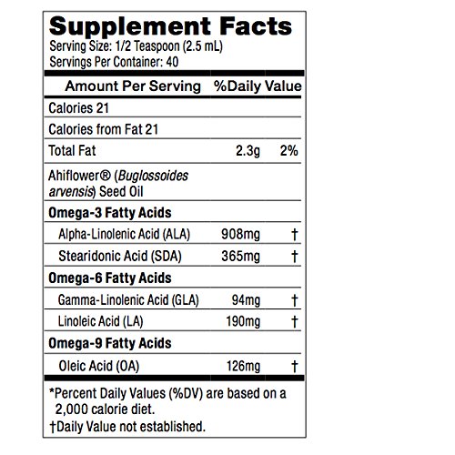 Vegan Omega 3-6-9 Ahiflower Oil, Better than Flax. Not from Fish. All-Natural, Non-GMO, Gluten-free 3.38 Fl. Oz. (100 mL)