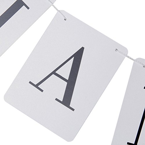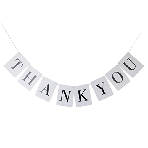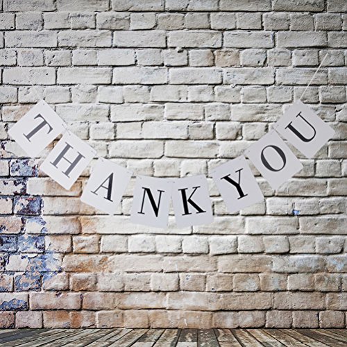 -. Feature : Color: mainly black, white. Made of cardboard paper with ribbon. / Sign card size: Approx. 14.5* 11cm 5.71* 4.33 inch. / Cord length: Approx. 2.4 m. THANK YOU wedding party banner. / 1 set includes: 8pcs banners and 1 rope / Suitable for wedding party, wedding ceremony use.