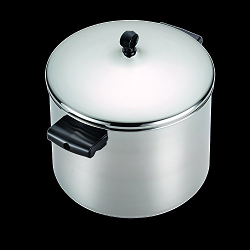 The stainless steel stockpot's heavy-duty stainless steel is polished to a mirror finish for a classic touch; the self-basting lid helps seal in heat and moisture
