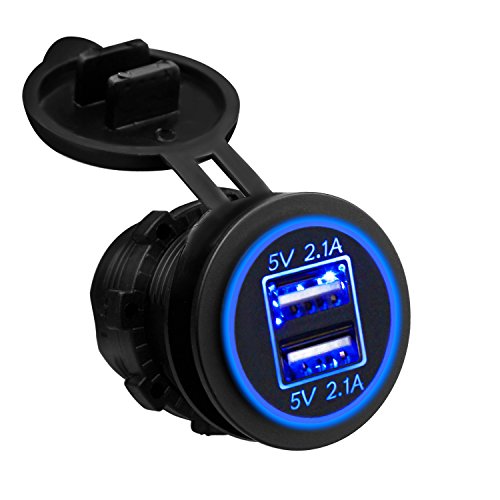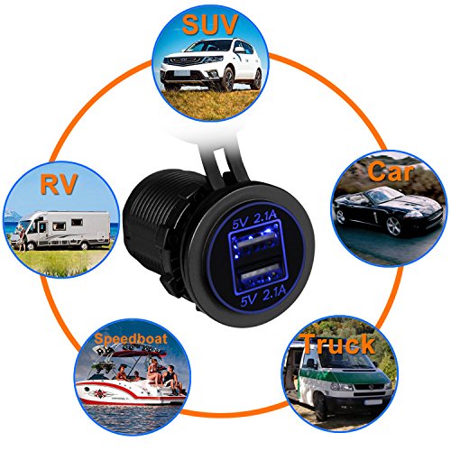 Sungwoo Dual USB Charger Socket 12V Power Outlet 2.1A & 2.1A for Car Boat Rv Marine Motorcycle, with LED Light (Blue)