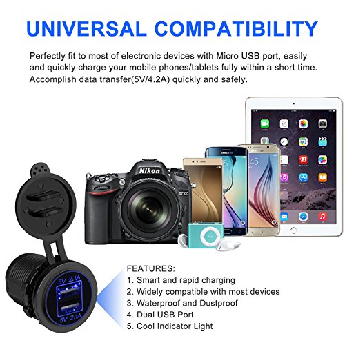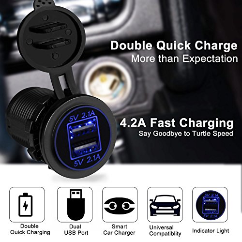 - LED Lighting Dual USB Charging Socket, perfectly applicable to all 12V-24V Car, Boat, Marine, RV, ATV, SUV and other vehicles. Decent and powerful car charger for outdoor driving.