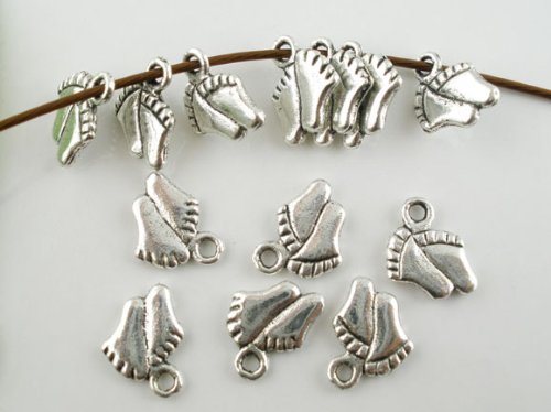 PEPPERLONELY Brand 100PC Small Antiqued Silver Baby Feet Charms Pendants 12x9mm