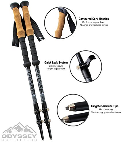 SOFT TOUCH CORK GRIP HANDLES - Conform to the shape of your hands for the ultimate in custom fit trekking poles - Won't make your hands sweat like cheaper foam grip poles