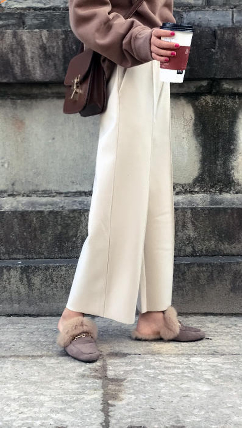 マニッシュに決まるワイドパンツ。