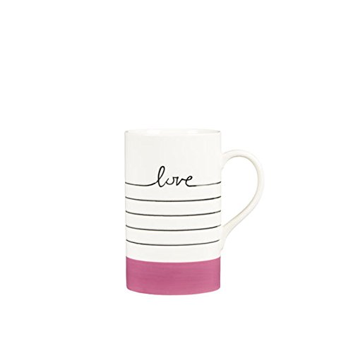 Read between the lines: "love" tops the pencil-thin stripes etched into this ceramic mug. The glazed white mug is accented with a pink base, while the etched stripes are filled with black glaze. Starbucks name on side. Holds 12 fl oz. Dishwasher and microwave safe. Part of the Valentine's Day Collection.