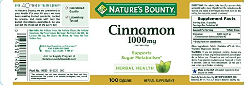 Nature's Bounty Cinnamon 1000 mg, 100 Capsules (Pack of 3)