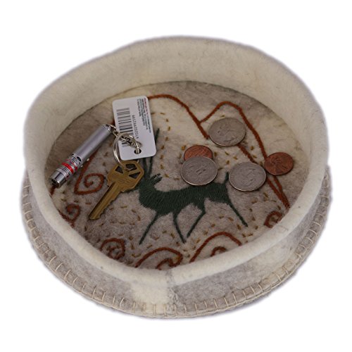Handmade Felt bowl for keys and coins of pure wool with hand embroidery of Kyrgyz Artisans