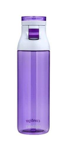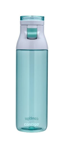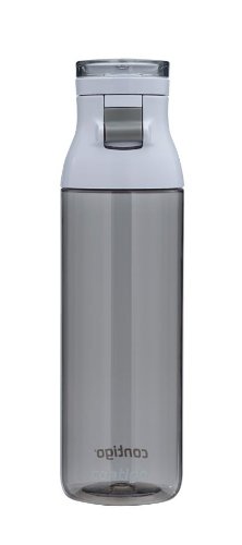 24-ounce capacity This year?s latest water bottle is here! Contigo has designed a sleek, new water bottle that is ideal for use every day, all day. The easy-flip, press button lid allows for convenient, one-handed drinking on the go, and the wide drink opening allows for fast filling and quick gulps. The water bottle also features a wide body opening for easy cleaning and filling with ice cubes. This BPA-free water bottle has a comfortable and stylish carry loop and the bottle is also top-rack dishwasher safe making it simple and easy to clean.