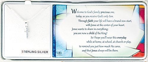 -. Binding : Jewelry -. Brand : Cross -. Department : girls -. EAN : 0714611182863 -. Feature : Celebrate her special First Communion day with a gift of this dainty sterling silver cross necklace / Petite 1/2" cross sparkles with cubic zirconia stones / Sterling silver chain is 16" / Comes in a deluxe presentation box with a First Communion p -. Label : Dicksons -. Manufacturer : Dicksons -. Model : 73-2646 -. MPN : 73-2646 -. PartNumber : 73-2646 -. ProductGroup : Jewelry -. ProductTypeName : FASHIONNECKLACEBRACELETANKLET -. Publisher : Dicksons -. Studio : Dicksons -. Title : My First Communion Sterling Silver Cubic Zirconia Cross Necklace -. UPC : 714611182863