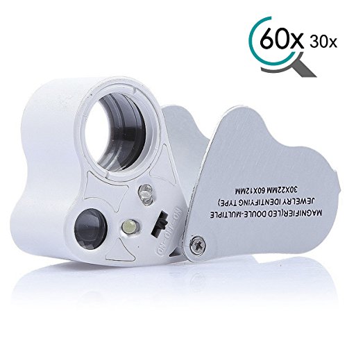 KINGMAS Jewelry Loupe 2-Lens 30x 60x Jewelers Eye Loupes Magnifier LED Illuminated Magnifying
