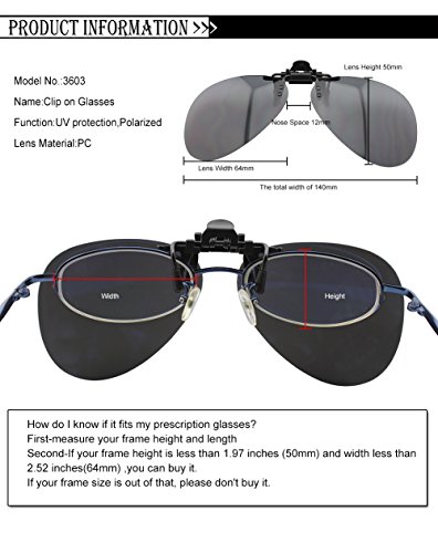 -. Feature : TAC POLARIZED LENS- 100% UV400 protection coating, blocks 100% harmful UVA,UVB& UVC Rays. Restore vivid color, eliminate reflected light and scattered light and protect eyes perfectly. TAC lens includes 8 layers. The 1st layer is polarization layer. The 2nd and 3rd layers are adhesive layers to enable durability. The 4th and 5th layers are UV protection layers to absorb UV light. The 6th and 7th layers are shatterproof layers.The 8th layers are anti reflective green coating. / PRODUCTS DIMENSION-Lens height:50 mm (1.97 inches); lens width:64mm (2.52 inches); nose bridge:12mm ( 0.47 inches); frame total:140 mm (5.51 inches). / STRONG STURDY DURABLE- Metal clip ends with silicone sock to provide LONG LASTING durability and avoid scratch your lens.It fits precisely over prescription glasses for man to wear it in summer, or outdoor activity like cycling bicycle, driving, riding a motorcycle,running,fishing, racing, skiing, climbing, trekking etc. / LIFETIME BREAKAGE WARRANTY ON CLIP & LENS - Clip and lens are unbreakable for no risk purchasing. In case any broken problem happens for any reason, even you stepped on it by accident, contact the seller of DUCO to get a new replacement.DUCO provides lifetime service for all DUCO products. / 30 DAY MONEY BACK GUARANTEE- You can easy return and get refunded for any reason like I don't like the style,I don't like the color,etc. Don't worry,You have no risk to try.
