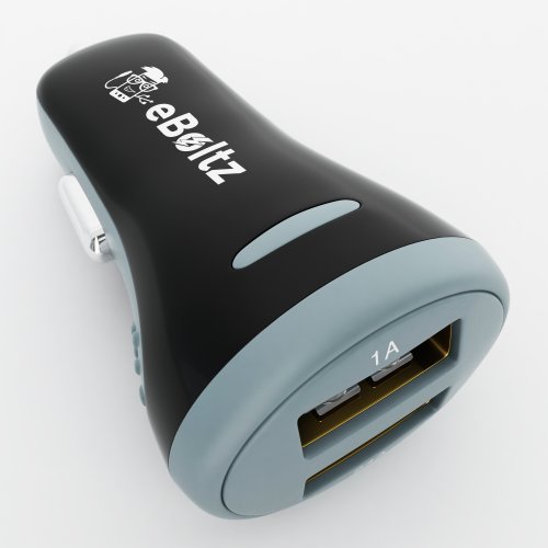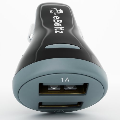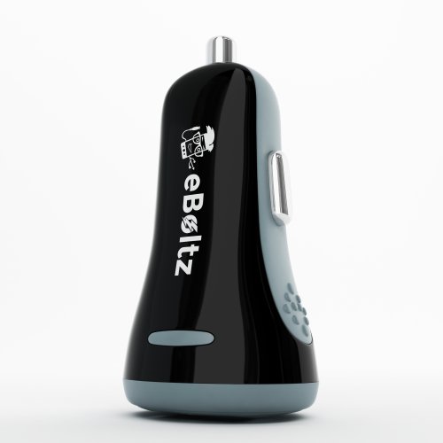 Dual USB Car Phone and Tablet Charger by eBoltz, 3.4Amp, 2.4A and 1.0A Ports, Apple iPods, iPads, iPhones, Android, Optimum 2.4A Charge, Input 10.5V - 18V, 17 Watt, 2 Year Warranty