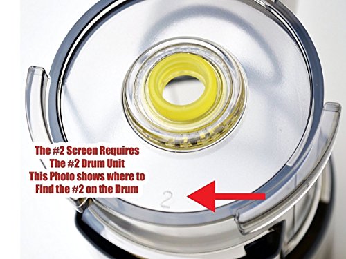 IMPORTANT FIT NOTE: There are two different types of screens available for these juicers. There is a screen available to fit Generation 1 Juicers (No number stamped on Juicer Drum) and the Latest Generation 2 Juicers (#2 stamped on Drum).