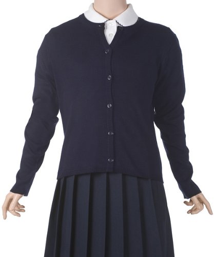 100% Acrylic School Uniform Fine Knit Sweater. Crew neck, button front sweater. Available in white and navy. By French Toast.