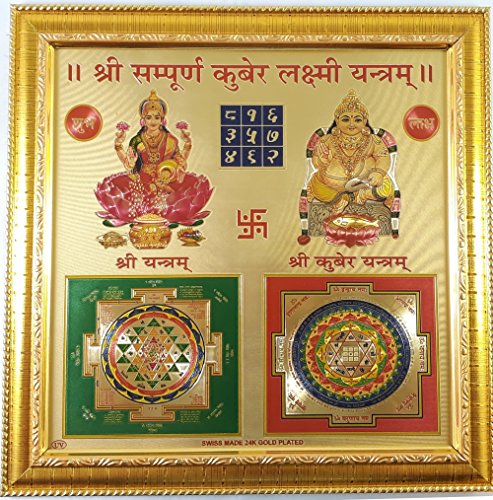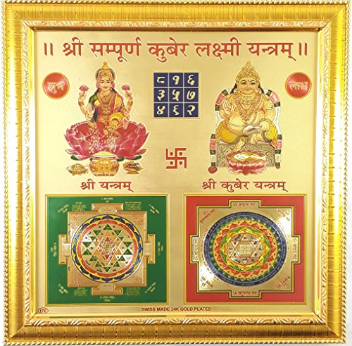 Divine Shree Sampoorna Kuber Laxmi Yantram 11x11 Inch Hindu Amulet-Blessed & Energized Beautifully Premiun Quality, Enameled & Gold Plated-Ultimate Yantra For Diwali Dipawali Puja Gift