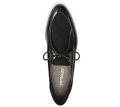Studio : Aerosoles Publisher : Aerosoles Binding : Apparel Product Description Bring a little tomboy chic to your wardrobe. lace-up oxford has a streamlined silhouette, pointed toe, raw stacked leather heel, and a multi-fabric upper to create a building block for this season’s ensembles. core comfort includes a flex bottom sole and memory foam footbed. laces. 1” stacked heel. 0