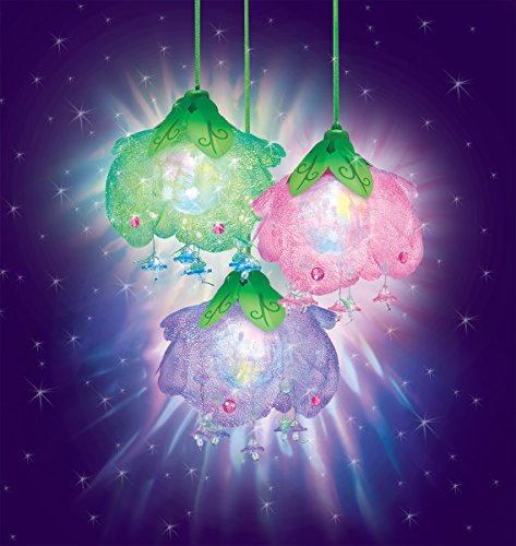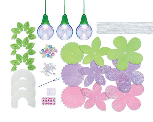 COMPLETE CRAFT KIT: Includes everything you need to create 3 shimmering flower lights for your room. Kit includes iridescent fabric flowers, sparkling beads and self-stick rhinestones.