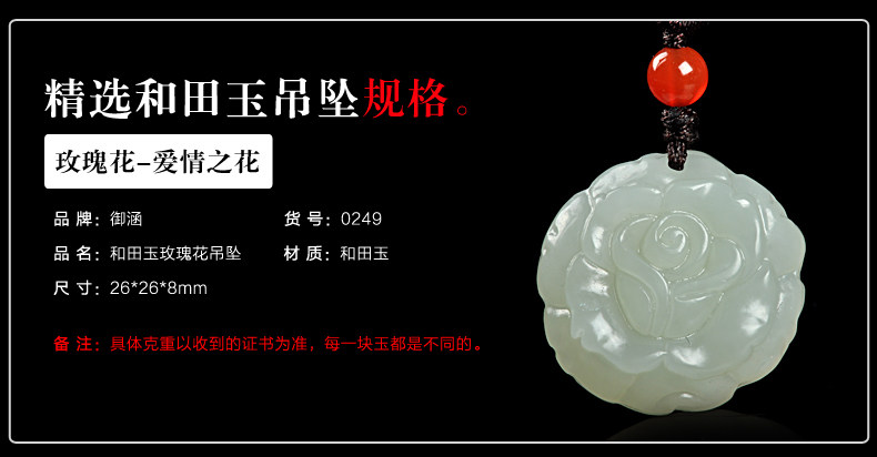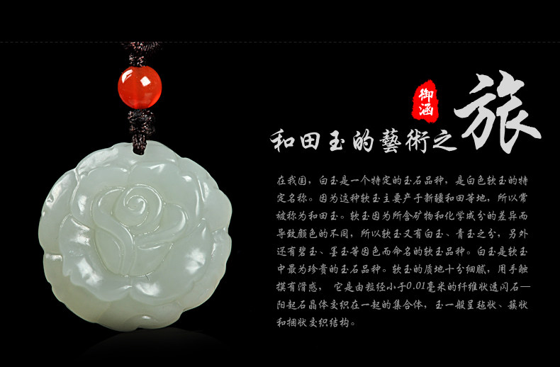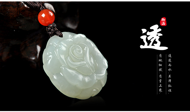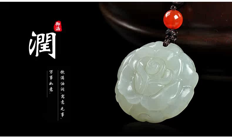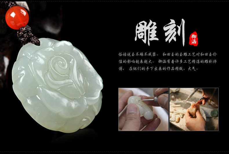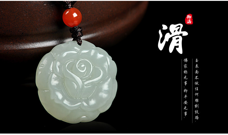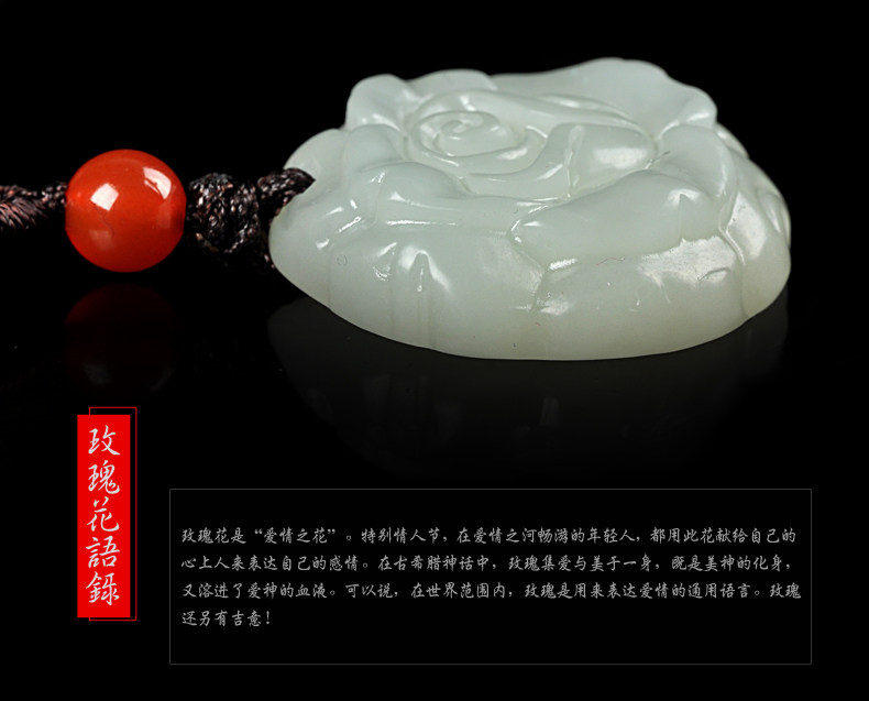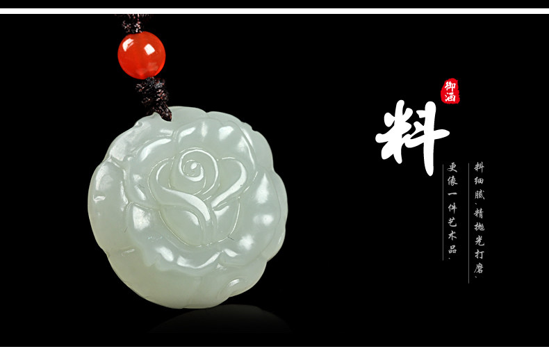 和田玉白玉吊坠 玫瑰花吊坠男女款玉坠挂件玉石项链玉佩