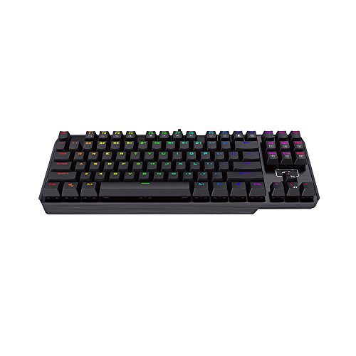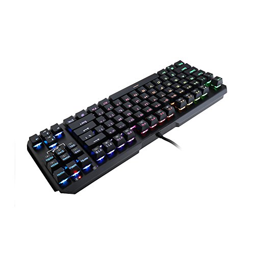 -. Feature : Custom mechanical switches (Cherry Green equivalent) for ultimate gaming performance / RGB LED adjustable lighting and double-shot injection molded keycaps for crystal clear backlighting / Aluminum and ABS construction, mechanical keys, and gold plated USB connector stand up to hardcore gaming / Custom mechanical switches designed for longevity, responsiveness, and durability. Mechanical keys with medium resistance, audible click sound, and tactile feedback / 87 standard conflict free keys, 12 multimedia keys, and splash-proof design / Interruptores mecánicos personalizados (cereza verde equivalente) para lo último en rendimiento de juego / Iluminación LED ajustable de color rojo y nalienfusion polipropileno moldeado por inyección teclas para Crystal Clear retroiluminación / Construcción de aluminio y ABS, plate-mounted llaves, mecánica y conector USB chapado en oro soporte hasta juegos / Interruptores personalizada mecánicos diseñados para la longevidad, capacidad de respuesta y durabilidad. llaves mecánicas con resistencia media, sonido audible Click y respuesta táctil / 87 teclas estándar última intervensión de conflictos, 12 teclas multimedia y diseño a prueba de salpicaduras