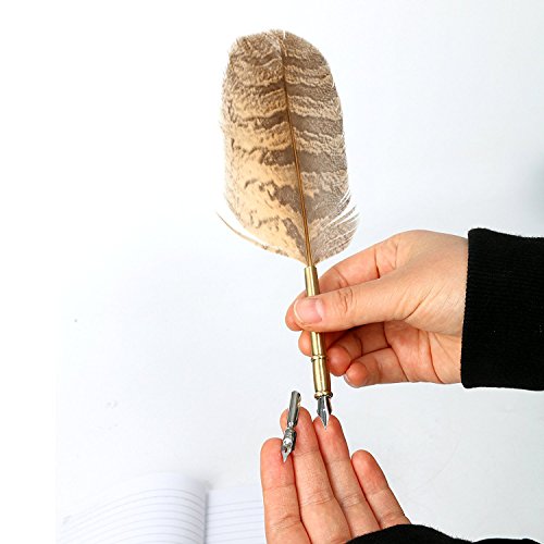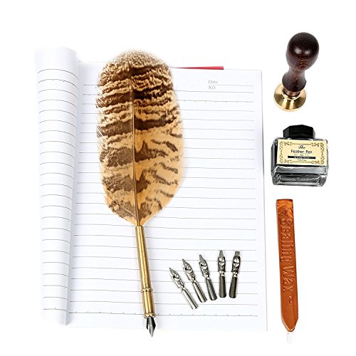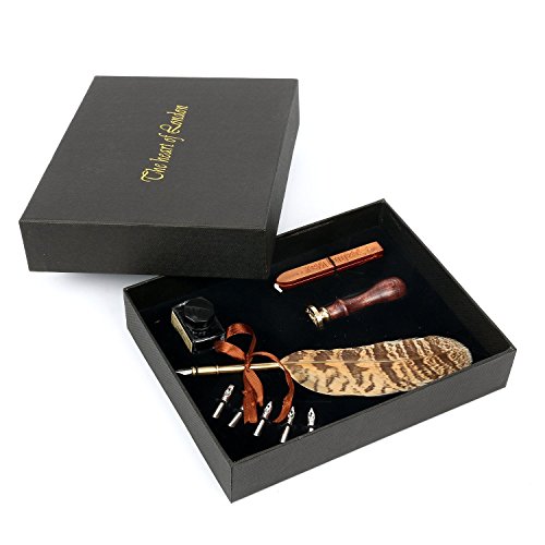 Yaetek Antique Natural Owl Feather Quill Dip Pen Nibbed Writing Ink Sealing Wax Seal Set Rare Stationery Gift with Box